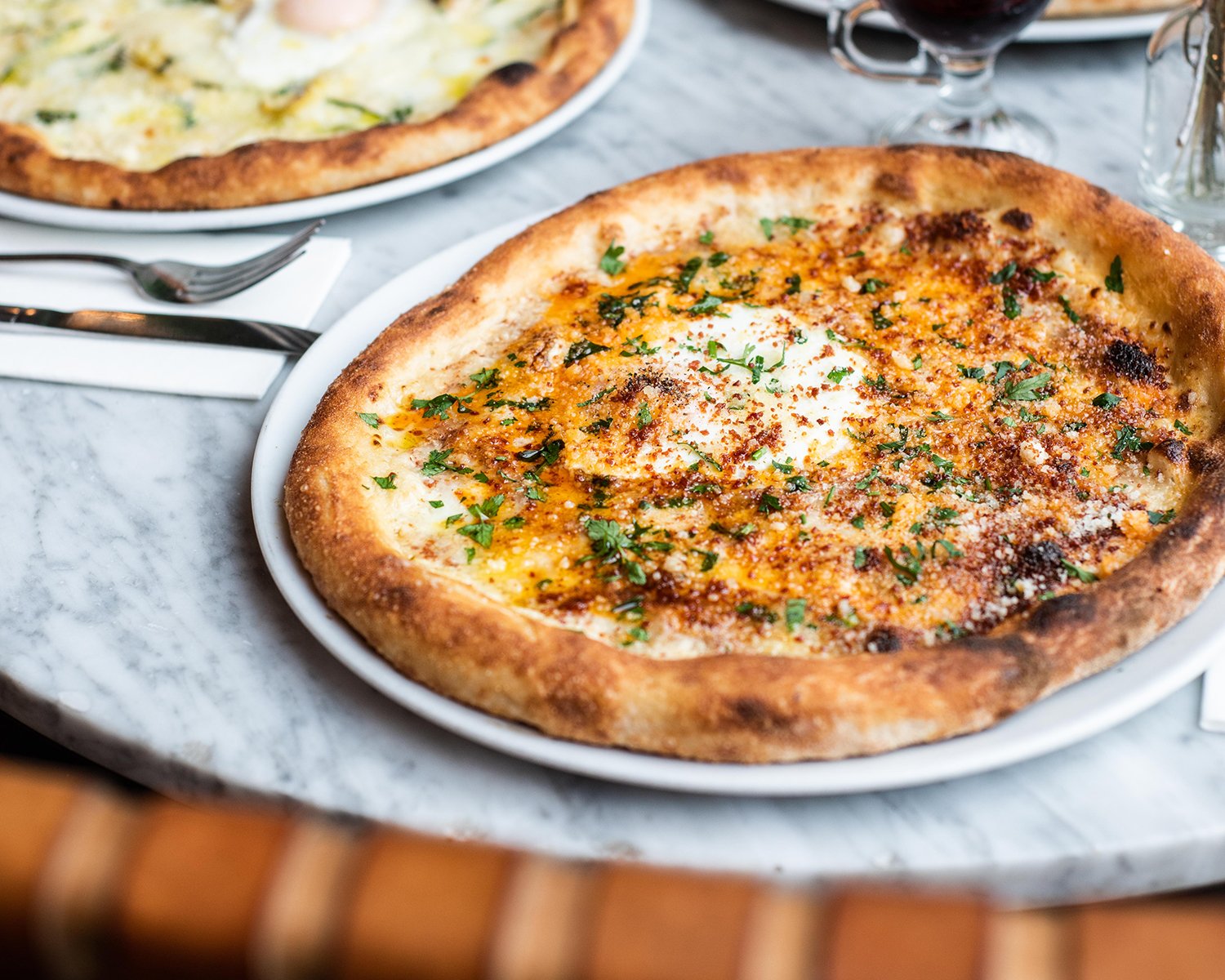 Slide 1 Slide 1 (current slide) Slide 2 Slide 2 (current slide) Slide 3 Slide 3 (current slide) Slide 4 Slide 4 (current slide) Slide 5 Slide 5 (current slide) All Day MenuSmall PlatesSauerkraut and cheddar croquettes, truffled mayonnaise 7 (v) Chickpea hummus, tahini, crispy chickpeas, house flatbread 6.5 (vg) Soanes Farm crispy chicken thigh, buttermilk mayo 8Pork, beef and hazelnut meatballs, tomato sauce, aged Parmesan, sourdough 9Tiny Tower Gin cured salmon, fried capers, pickled shallots, creme fraiche 11.5Burrata, tomato and onion salad, dried black olives 10.5 (v/gf)PizzaNo. 1 - Fior di latte mozzarella, La Masseria olive oil, passata, torn basil 12.5 (v) No. 2 - Fior di latte mozzarella, La Masseria olive oil, passata, house chorizo, n’duja 15No. 3 - White base, fior di latte mozzarella, confit new potatoes, gorgonzola, rosemary 13 (v) No. 4 - Red pepper & almond base, Jerusalem artichoke, mushroom, black olives, sunflower pesto 15 (vg) No. 5 - Fior di Latte mozzarella, British smoked mozzarella, smoked pancetta, walnut and sage pesto, chestnuts 16.5No. 7 - Fior di Latte mozzarella, white base, crispy bacon, soft egg, chilli, maple syrup 16.5Large PlatesCaeser Salad - fried buttermilk chicken, gem lettuce, Caesar dressing, parmesan crisp, soft boiled egg, croutons and parmesan 16Superfood Salad - Vegan superfood salad with sweet potato, broccoli, cavelo nero, soy pumpkin seeds, black quinoa, buckwheat, crispy shallots, almonds and coconut yoghurt dressing 15Chicken Burger - Buttermilk fried chicken, ranch mayo, lettuce, tomato and gherkins. Served with fries 16.5Truffle Chicken Burger - Buttermilk fried chicken, charcoal brioche bun, truffle cheese sauce, crispy shallots, crispy mushrooms, truffle mayo, lettuce and tomato. Served with fries 18.5Plant Based Burger - Beetroot, lentil and peanut patty, vegan cheese, tomato, lettuce, gherkin, red onion, burger sauce £16 (vg)Line-caught Cornish haddock - spiced batter, mushy peas, tartar sauce, chips 17 Middle White pork chop on the bone (350g) - burnt Bramley apple sauce, cavolo nero, gravy 23 (gf)Sides Mixed leaf salad 3.75 (vg/gf) Chips 5 (vg/gf) Watts Farm crushed new potatoes 4.5 (vg/gf)Roasted tenderstem broccoli, pecorino cheese, hazelnuts 5.5 (v/gf)Dessert Selection of Sorbets - mandarin, Prosecco, blackcurrant 6.5 (v/gf)Mandarin Cheesecake - with pistachio ice cream 7.5 (v)Chocolate and Pecan Brownie - dark chocolate ice cream, chocolate sauce 7.5 (vg/gf)The All-Day Menu is replaced by the Saturday Brunch menu between 11am - 5pm on Saturdays and by the Sunday Lunch menu on Sundays. Book Now Brunch Menu Gift Vouchers